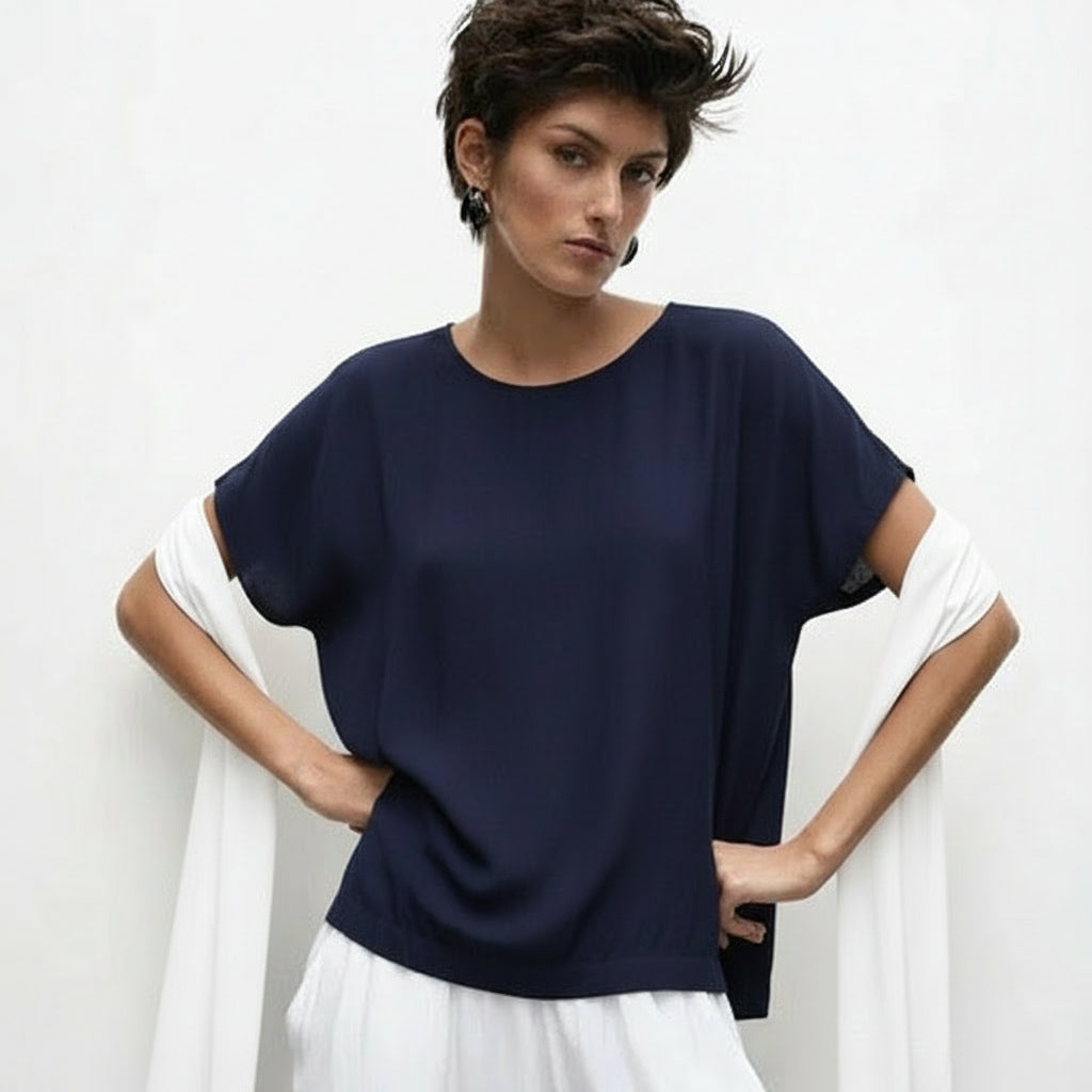 The Cap Shell is a versatile staple. Cut relaxed through the body with a flattering cap sleeve, detailing is elegant and kept to a minimum with discreet inside bind at scoop shaped neckline, and a simple pleat at the nape of the neck to encourage movement.