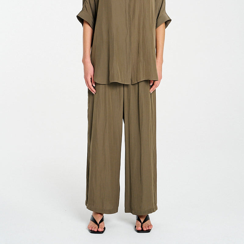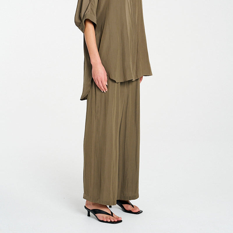 Crafted from Mela Purdie's fluid and luxurious Mache fabrication, the Pace Pants are a classic Mela Purdie Silhouette. Slightly cropped in length with a wide leg cut, these pants are comfortable addition to your capsule wardrobe.