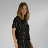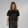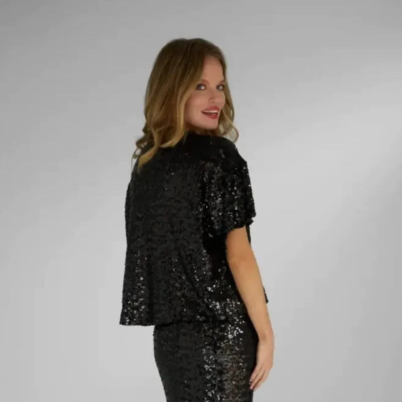 The Noir Paillette Shirt brings sparkling glamour to any look. Completely covered in elegant black sequins, it becomes a stylish eye-catcher for special moments.
