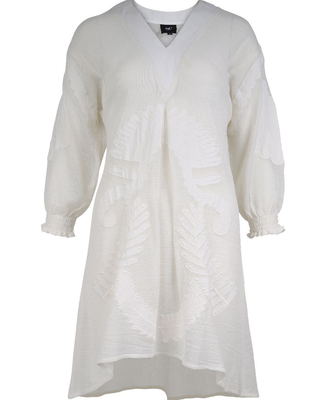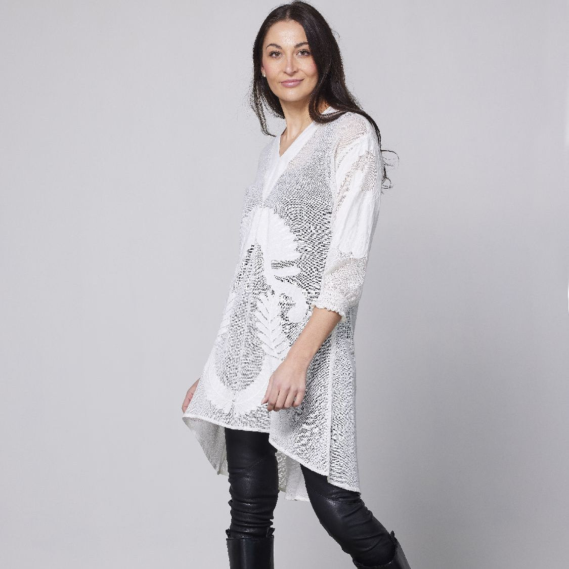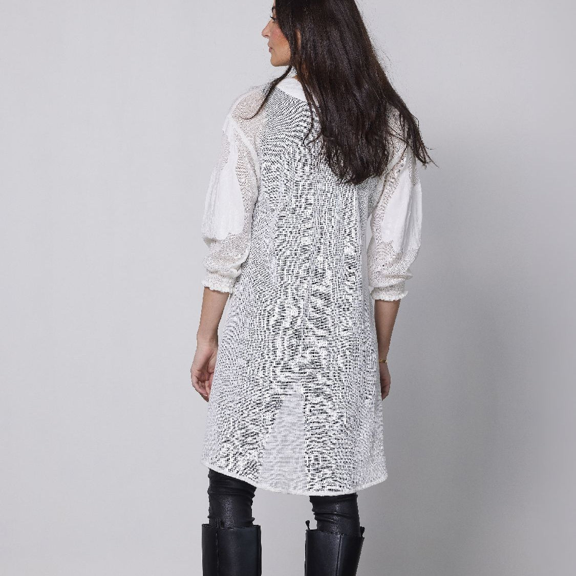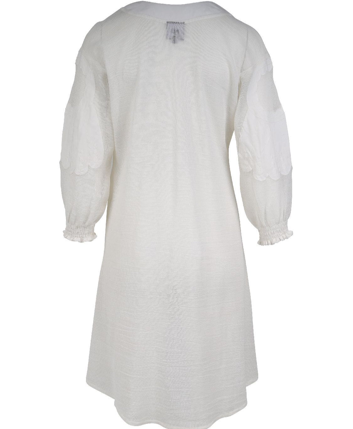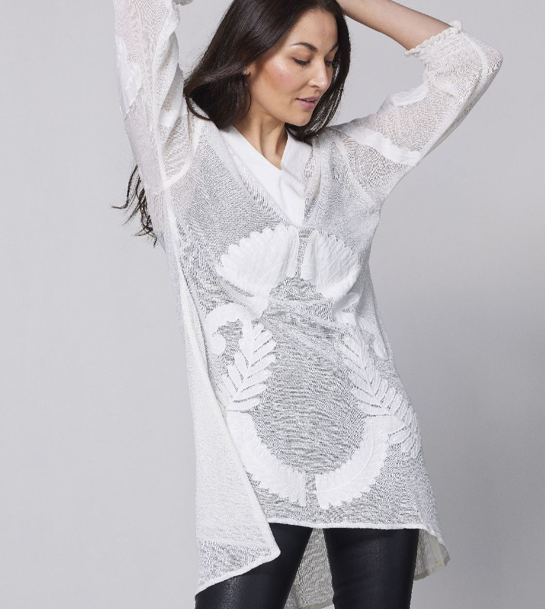 The tunic is slightly shorter at the front than at the back, so you can wear it in different ways: as a dress with a petticoat, on leggings or with wide trousers for a trendy look.