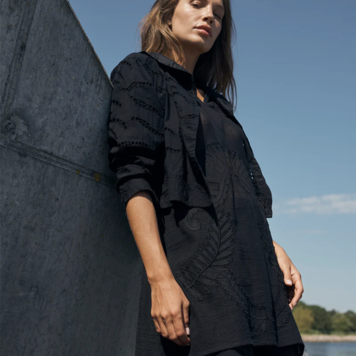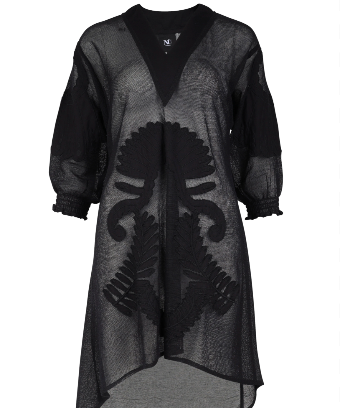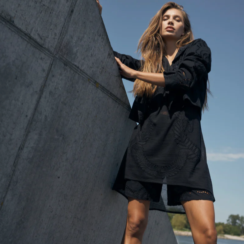 The Yaina Tunic by Nu Denmark is an elegant and cool tunic with a playful twist. Made of transparent lace, this tunic has a unique design on the belly, which creates a striking and special effect. The V-neck and elbow-length sleeves give the design an airy and stylish look.